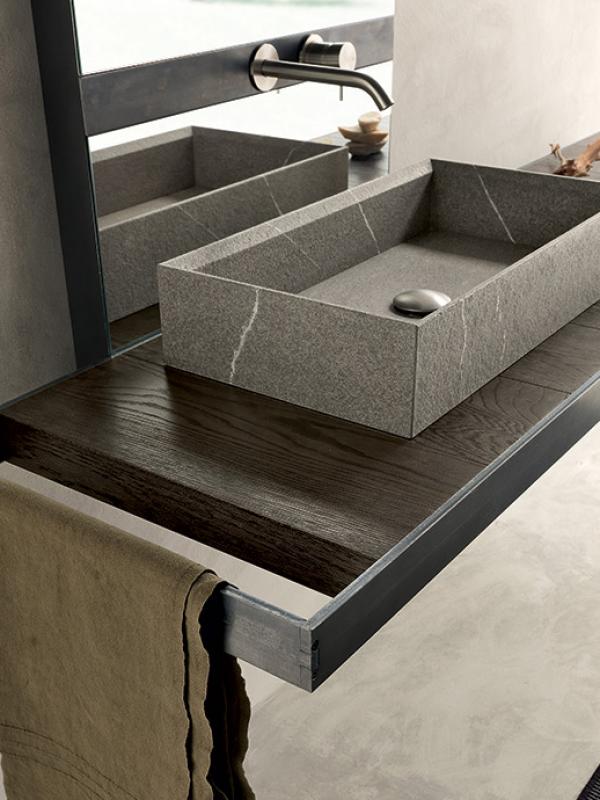 The L-shaped elements of the large book case Unlimited are available in four different heights that can be freely combined together to reach the wished total height and in different finishes: melamine, satin lacquer, raw oak and concrete resin to meet any need. The crossing between shelves and front uprights generates some open spaces that can be filled with elements Infinity made with folding technique.